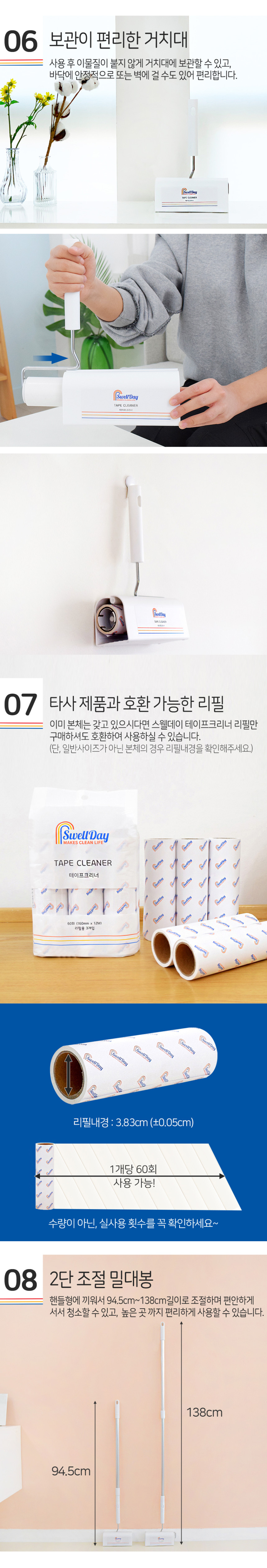 스웰데이 사선컷팅 테이프크리너 7종 (핸들+거치대+밀대+리필4P)